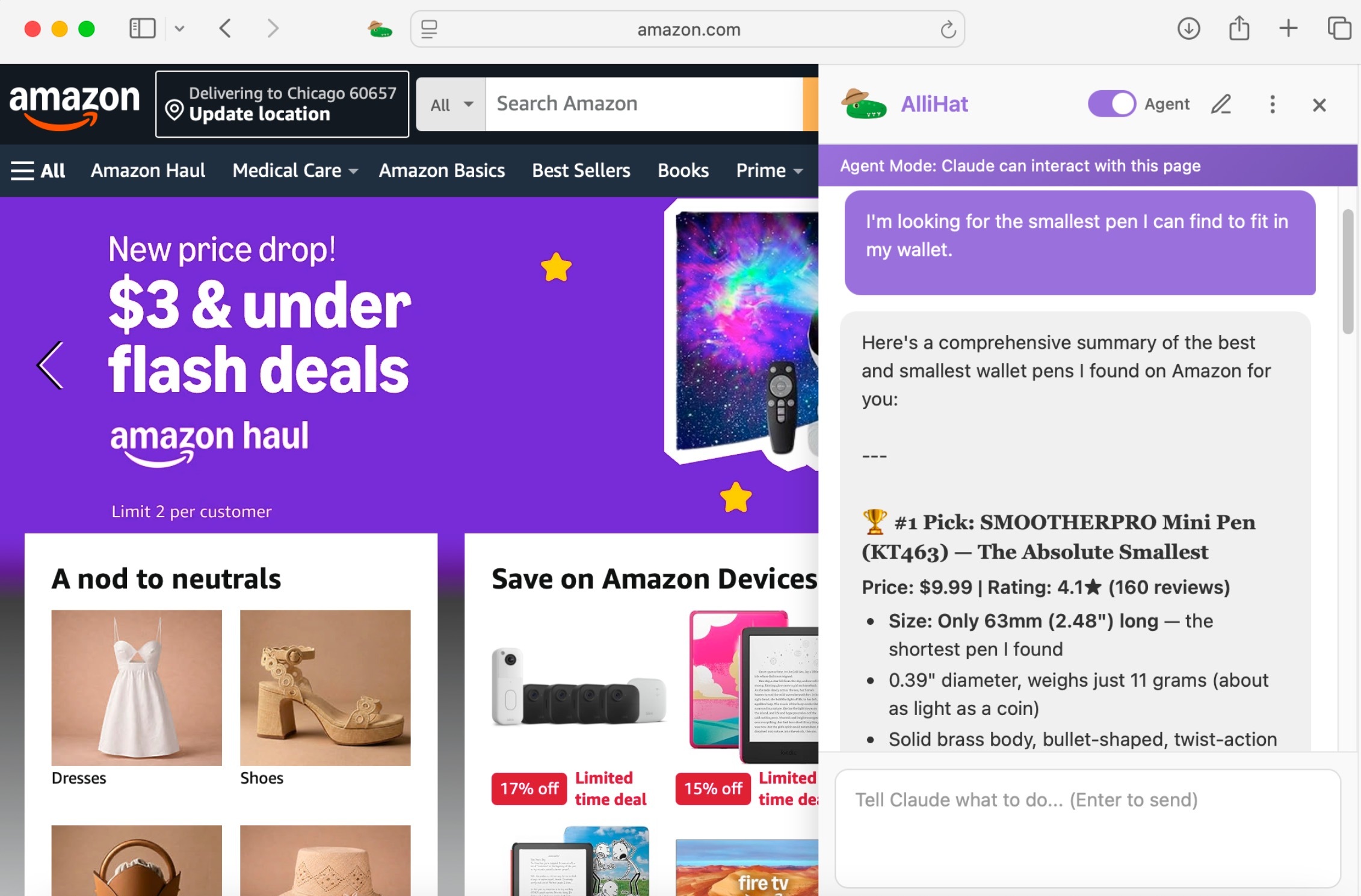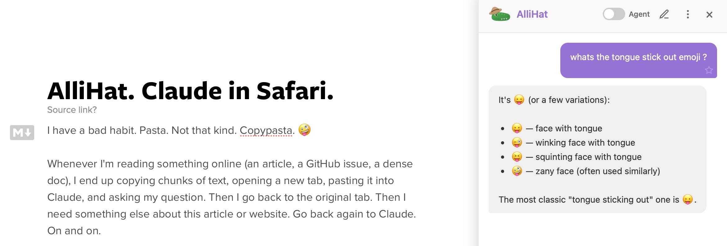 It’s called AlliHat. It’s a Safari extension that puts Claude right in a sidebar next to whatever page you’re on.